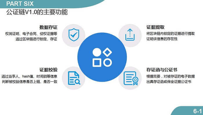 公证链的定位是互联网公证业务“最佳基础设施”,是业务运行的全能平台,是司法对接的高效、可信通道,是同行互通的可信、安全接口。分布式节点利于公证通过互联网触及业务需求,同时也利于各单位共同参与,在实现传统公证业务向线上迁移的同时,区块链技术帮助实现了其他使用司法服务的单位的入驻与合作。公证链要满足社会对于数字化、信息化场景下公证服务的需求,是要利用技术手段触及业务场景,提升服务能力。